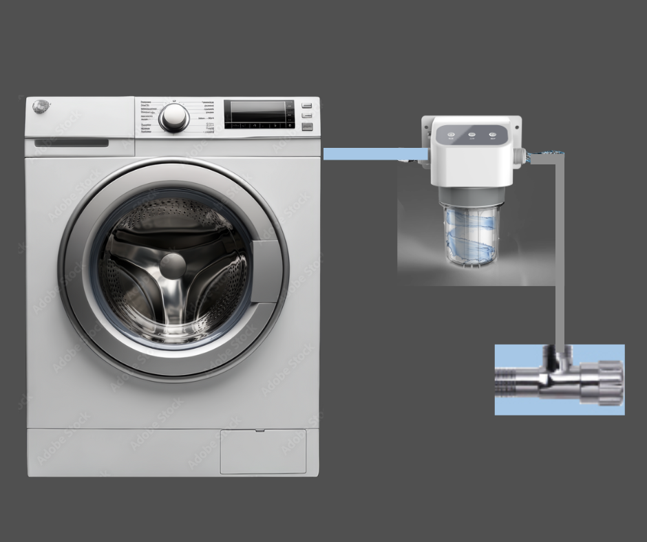 將本產品安裝在洗衣機進水口前端,接上電源即可。 當洗衣機進水時,產品智慧開啟,對水質進行過濾後, 對水分子電解重構,使進入洗衣機的水源具有消毒和除菌功能,從而減少含氯化學消毒液的使用。
